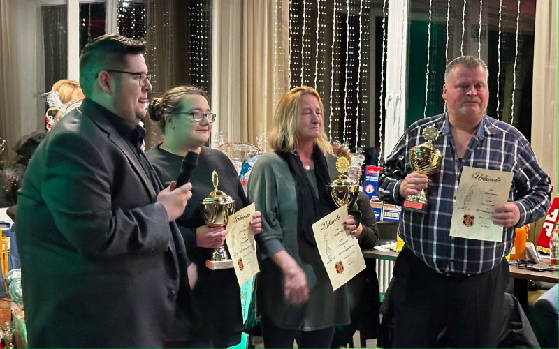 Durch den Abend führten Abteilungsleiter Tobias Heift und Vorstandsmitglied Torsten Elbert, die auf das letzte Jahr zurückblickten und Vorfreude auf die Auftritte 2024 vermittelten. Besondere Highlights waren die große Tombola, der Besuch des Nikolaus, eine heitere Szenen-Aufführung der Jugend und die Ehrungen für langjährige Mitgliedschaft einiger Mitglieder. Dieses Jahr wurden geehrt: