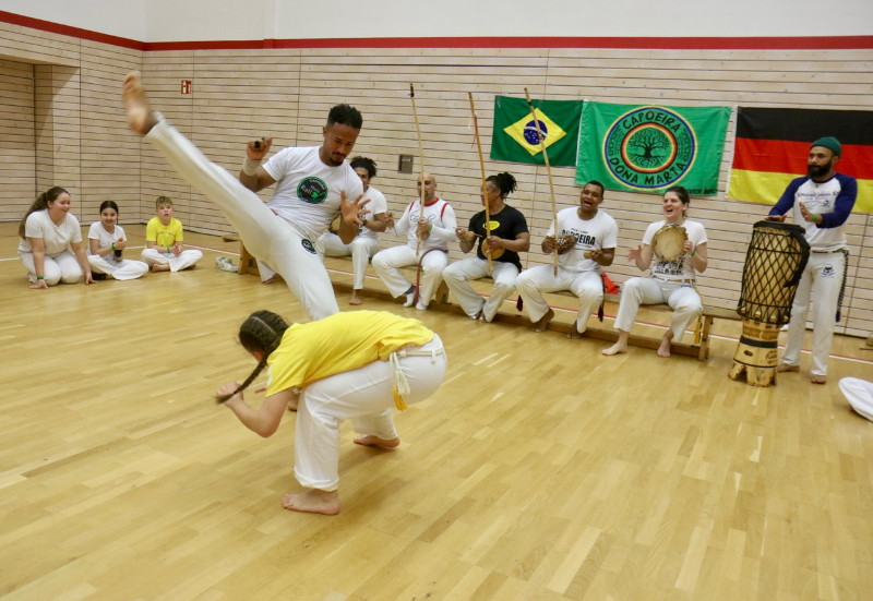 Capoeira ist eine afro-brasilianische Kampfsportart, die im 17. Jahrhundert in Brasilien von Sklaven aus verschiedenen Regionen Afrikas als Widerstandskampf entwickelt wurde. Um den Kampf als Tanz zu tarnen, vereint Capoeira Angriffstechniken mit tänzerischen Elementen und rhythmischer Musik. Heute wird Capoeira in über 170 Ländern praktiziert und gilt als größter Verbreiter der brasilianischen Sprache und Kultur in der Welt. Obwohl Capoeira als Kampfkunst bezeichnet wird, "kämpft" der Capoeirista nicht, sondern "spielt". Teilnehmen kann jeder, der an Sport und Musik interessiert ist. Für Freunde, Neugierige und Interessierte gibt es am 27.01.2024 um 16:30 Uhr die Zeremonie „Batizado E Troca de Cordas“ zum Zusehen.