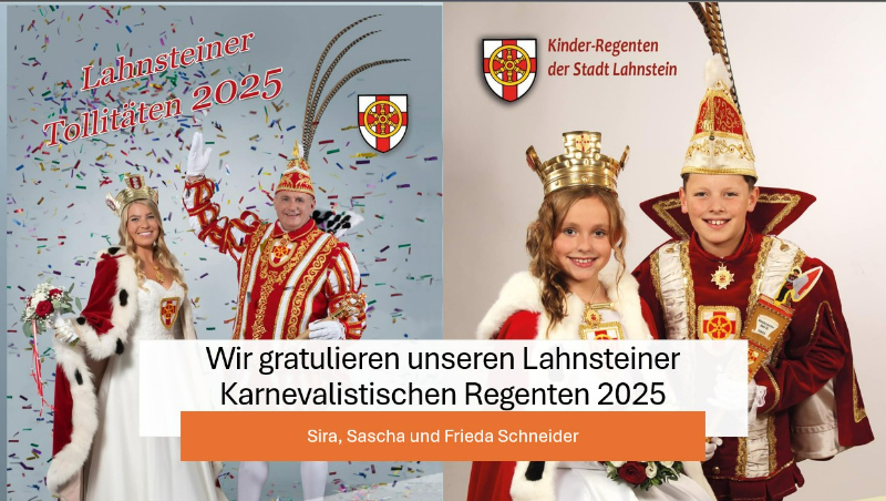 Wir gratulieren unseren Lahnsteiner Karnevalistischen Regenten 2025.