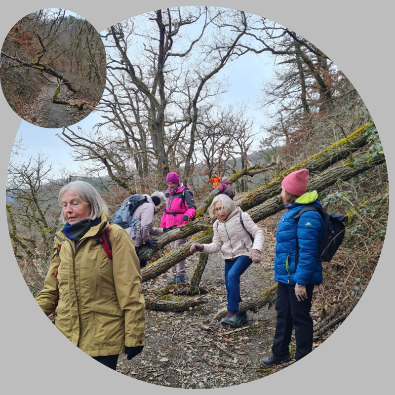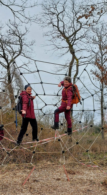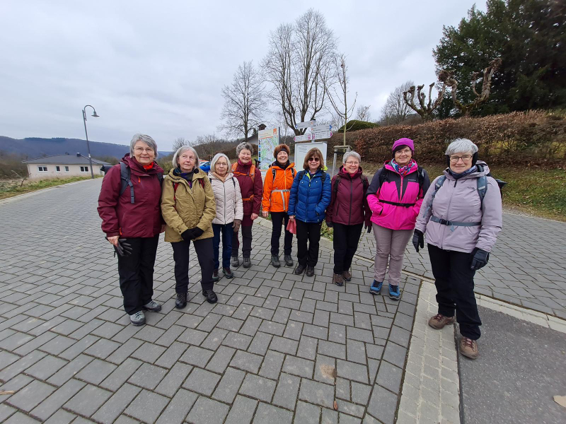 Am Samstag, den 15.02.2025 starteten die Wanderfreunde der Turngemeinde Oberlahnstein unter der Leitung von Margit Gitzen zu ihrer ersten Tour in diesem Jahr. Als Tagesstrecke war der Traumpfad „Rheingoldbogen“ mit Start und Ziel in Brey verabredet. Neun wanderlustige Damen machten sich auf den Weg und trotzten Kälte und eisigem Wind auf den Höhen. Dies tat der Stimmung keinen Abbruch. Zum Glück gab es keinen Niederschlag. Vorbei an einer römischen Wasserleitung führte der Waldweg bergauf zu einer Schutzhütte und vorbei an Wingerten zur Weinbergsschaukel mit Panoramablick auf das Rheintal und die Marksburg. Hier wurde eine erste Rast zur Stärkung eingelegt. Kurz vor dem Hotel Jakobsberg entkamen einige Teilnehmerinnen einer gefräßigen Riesenspinne, die in ihrem Netz auf Beute wartete. Schon bald erreichte die Gruppe das Plateau oberhalb des Bopparder Hamm und folgte dem Rheinlauf. Die letzten Kilometer wurden auf nassen und sehr matschigen Feldwegen zurückgelegt. Nach einem Abstecher zur Muttergotteskapelle war das Ziel schnell erreicht. Den Abend ließen die Wanderfreunde in Lahnstein beim Abendessen in der Gaststätte „Bauerntal“ in Lahnstein gemütlich ausklingen. Ein Datum für die nächste Wandertour steht noch nicht fest, wird aber baldmöglich bekanntgegeben. Die wanderfreudigen Damen hoffen dann auch wieder auf zahlreiche männliche Unterstützung. Interessenten melden sich gerne bei Margit Gitzen unter der Mailadresse margit.gitzen@tgo-lahnstein.de